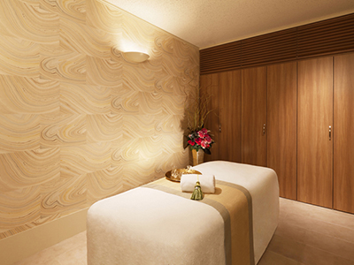 京都店は、店内に一歩踏み入れると、町の喧騒から解き放たれ、“翡翠”をイメージした落ち着きあるグリーンを施したリラクゼーション効果の高い空間が広がります。東山の緑を望めるリラクゼーションエリアや、ゆったりと横になれるサウナ、完全個室のトリートメントルームをご用意しました。京都ならではのおもてなしで、極上の癒しのひと時をお過ごしいただけます。